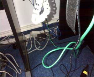 Si bien la probabilidad de una descarga electrica no es alta en general en la mayor parte de los call centers que inspeccione observe condiciones como estas: