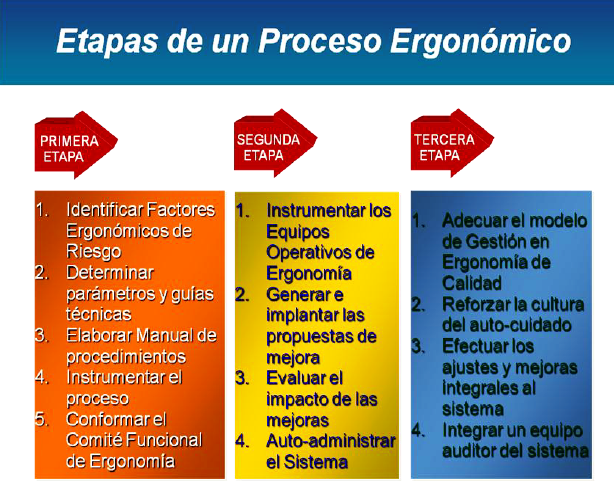 El objetivo es buscar la optimización en los procesos de trabajo y los sistemas de producción, mediante la generación, implementación y seguimiento de recomendaciones y lineamientos ergonómicos, orientados al uso correcto de herramientas, equipos, maquinaria, dispositivos y ejecución de tareas, con