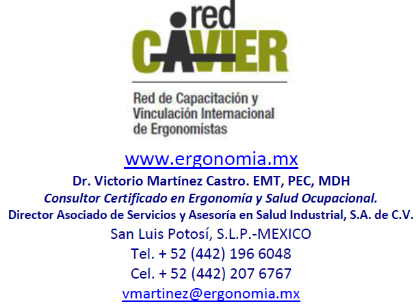 Mi buen amigo de Mexico Victorio Martinez de la RED CAVIER me manda este excelente material para compartirlo con todos ustedes, referente a los COMITES FUNCIONALES DE ERGONOMIA y LA ERGONOMIA APLICADA AL FACTOR HUMANO, les dejo un resumen de los aspectos mas importantes, excelente trabajo que hacen mis buenos amigos de Mexico, mas abajo tienen el link para que lo descarguen y compartan: