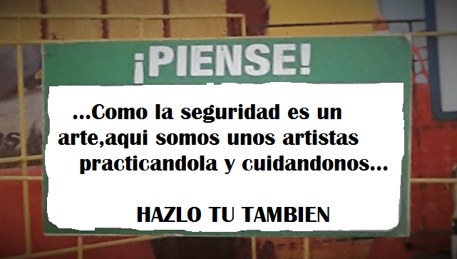 Editando la imagen anterior y partiendo de la idea que la seguridad es un arte, así la plasmaría en una señalización (ojo que no es lo ideal plasmar conceptos en señalización) ya que la idea es llamar la atención no distraer a la gente leyendo….