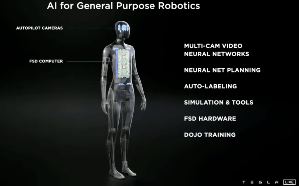 Pues esa es la idea A FUTURO ,como siempre he dicho ahí tienen el futuro del trabajo y de la desaparicion de este COMO LOS CONOCEMOS, gracias a los avances tecnico cientificos y a la pandemia, quieran o no quieran, a tesla no la paran ni las criticas ni las tonterias politicas y burocraticas de algunos paises, si bien a este proyecto le falta tiempo para concretarse, NO SERA MUCHO y los cambios como siempre seran INDETENIBLES… Hoy por hoy muchos seres humanos estan de sobra y muchos trabajos estan de mas, por mas duro y crudo que esto suene. Y recuerden esto solo sera el inicio del la era de los BOTs, ya que APPLE, GOOGLE y SAMSUMG tambien andan en lo mismo.