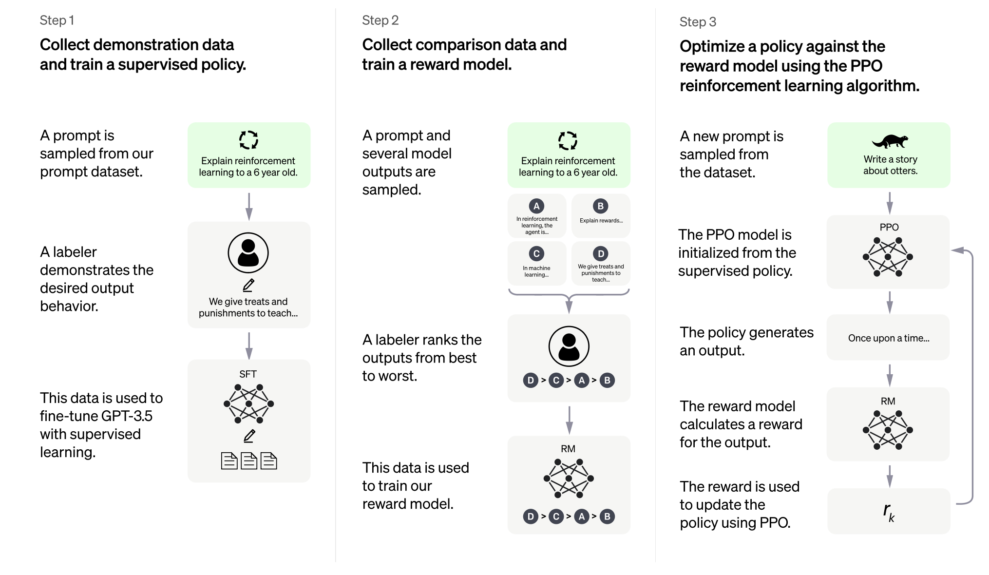 Como hace CHATGTP su magia gráficamente lo explica OPEN IA.